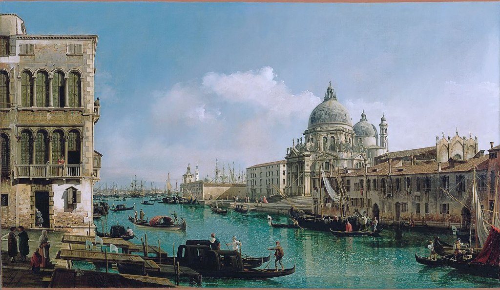 I most miss the amazing colour of the water at the entrance to the Grand Canal. Instead of the normal Canaletto I have chosen this view by Bernardo Berletto (1722-1780) entitled View of the Grand Canal: Santa Maria della Salute and the Dogana from Campo Santa Maria Zobenigo, c1743, which is in the Getty Museum New York.