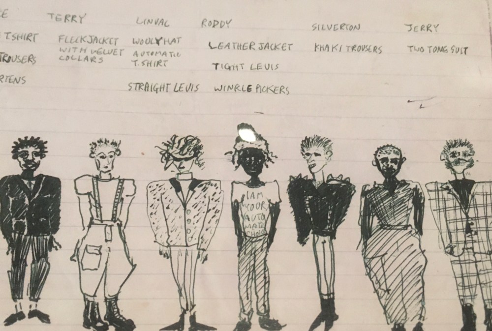 Jerry Dammers, sketch for stage outfits, Specials Style drawing, Herbert Gallery, Coventry.