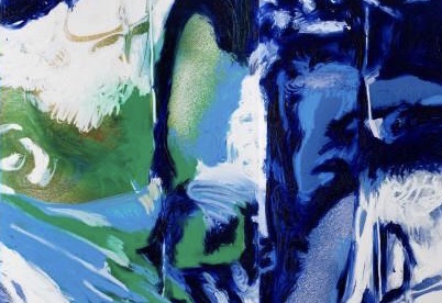 Cueva de Copal draws on “painting, performance, choreography, video and sensory interventions” according to the curation notes. Firstly I will describe what I saw and then articulate what I think I should have seen. Entering the space I saw the mixed media paintings, rich in blues, greens and whites; full of curvilinear figures, but somewhat abstract. Below the paintings were a beach of pure white sand which clearly complimented the paintings. Behind me, the other wall is a rich ultramarine surface which pierces the space, pushing you into the beach sand. Also is a stand alone sculpture with similar mixed media painted surfaces concentrating on green hues. All the visual work is complimented with an audio track and strong fragrance – the artist’s own recipe.